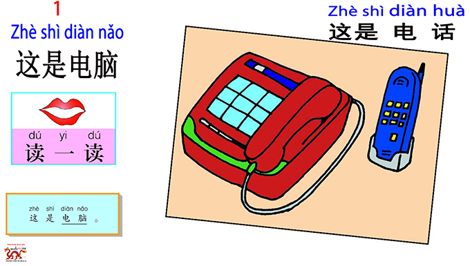 12) 这是电话/Zhè shì diàn huà/Esto es un teléfono./This is a phone.