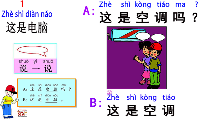 22) B: 这是空调/B: Zhè shì kòng tiáo/B: Esto es un aire acondicionado./This is an air conditioner.