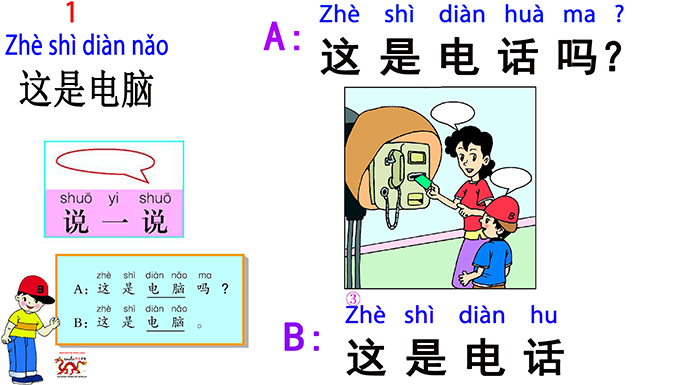 24) B: 这是电话/B: Zhè shì diàn huà/B: Esto es un teléfono./This is a phone.