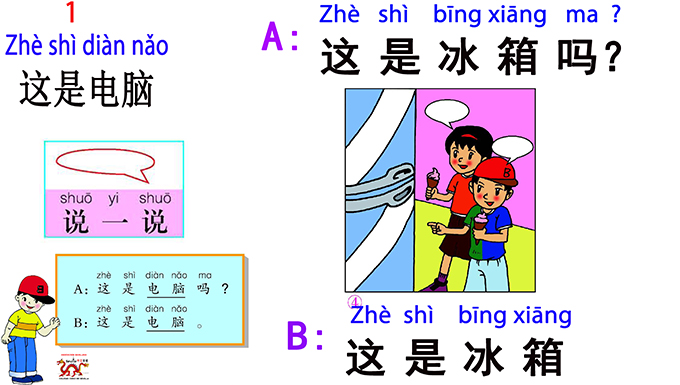 25) A: 这是冰箱吗?/A: Zhè shì bīng xiāng ma? /A: ¿Es esto un frigorifico?/Is this a refrigerator?